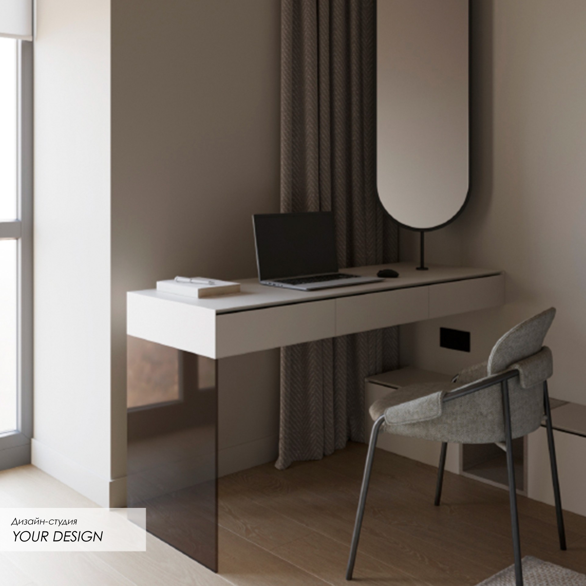Рабочий стол с фасадами и столешницей с фрезеровкой под 45 градусов