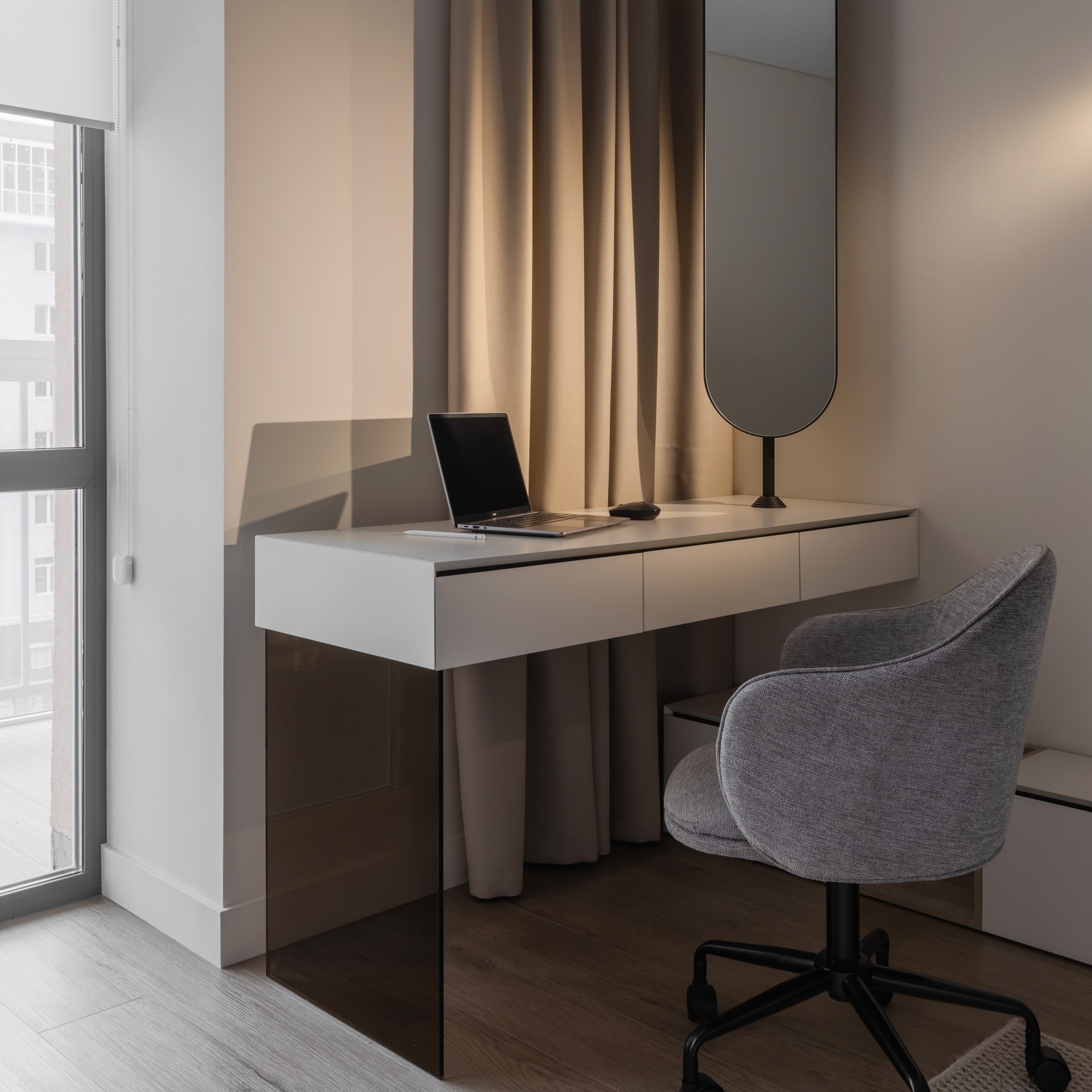 Опора письменного стола из закалённого стекла 10 мм. Фурнитура Samet (Турция)